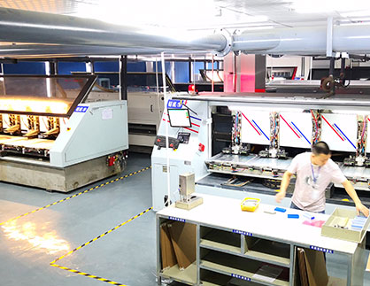 自動文字絲印及噴印機生產連線,可同時正反面生產,生產一致性更高;同時亦提升生產效率及良率。