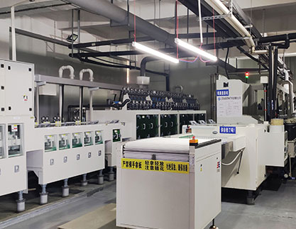 全自動龍門電鍍生產線,電鍍電流控制精度高,電流均勻性好;聯昇電子針對常規銅厚的PCB板電鍍時間為75分鐘以上,孔銅最低達20um。